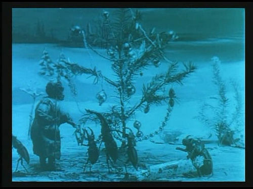 Still from ‘The Insects’ Christmas’ featuring the insects and a christmas tree