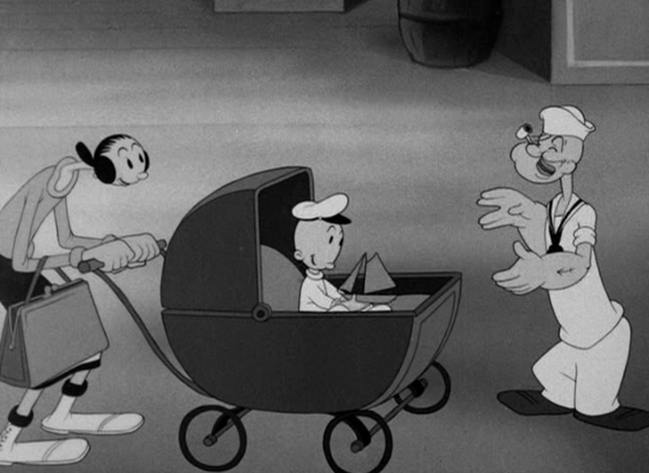 Still from ‘Baby wants a Bottleship’ featuring Olive Oyl, Li’l Swee’Pea and Popeye