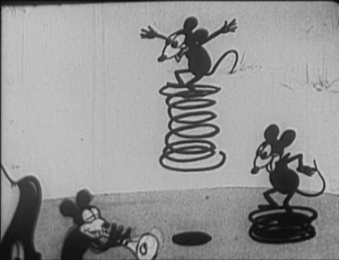 Still from ‘Summer Time’ featuring two mice on springs and one playing the trumpet