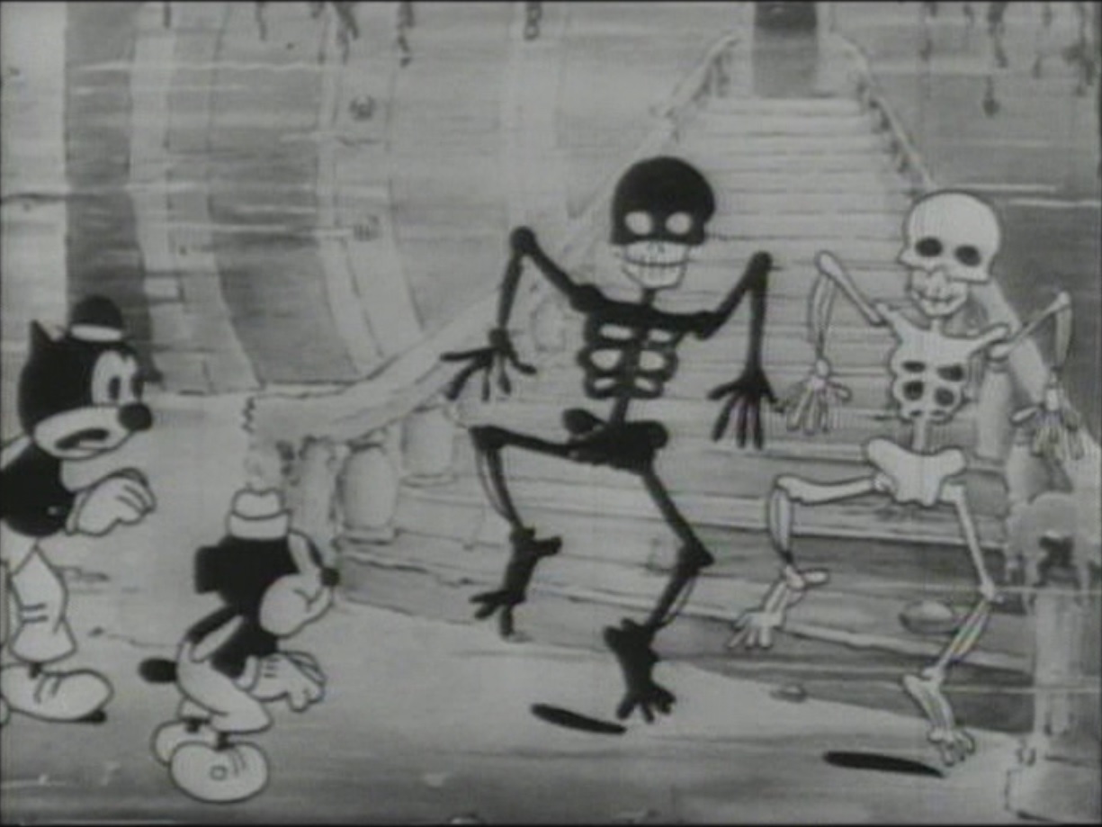 Still from ‘The Haunted Ship’ featuring Waffles and Don encountering two skeletons