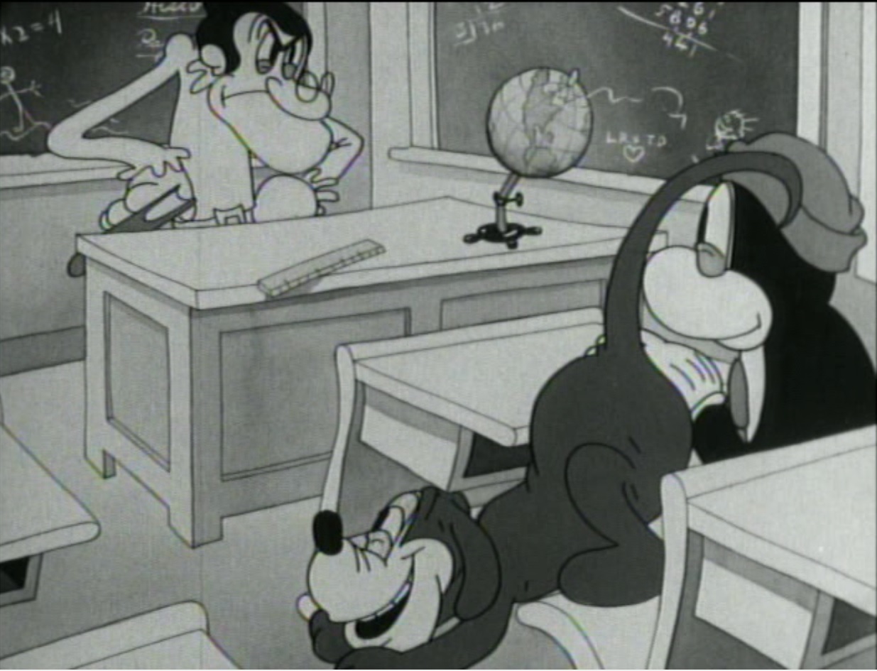 Still from ‘School Days’ featuring Flip the Frog and his dog at school