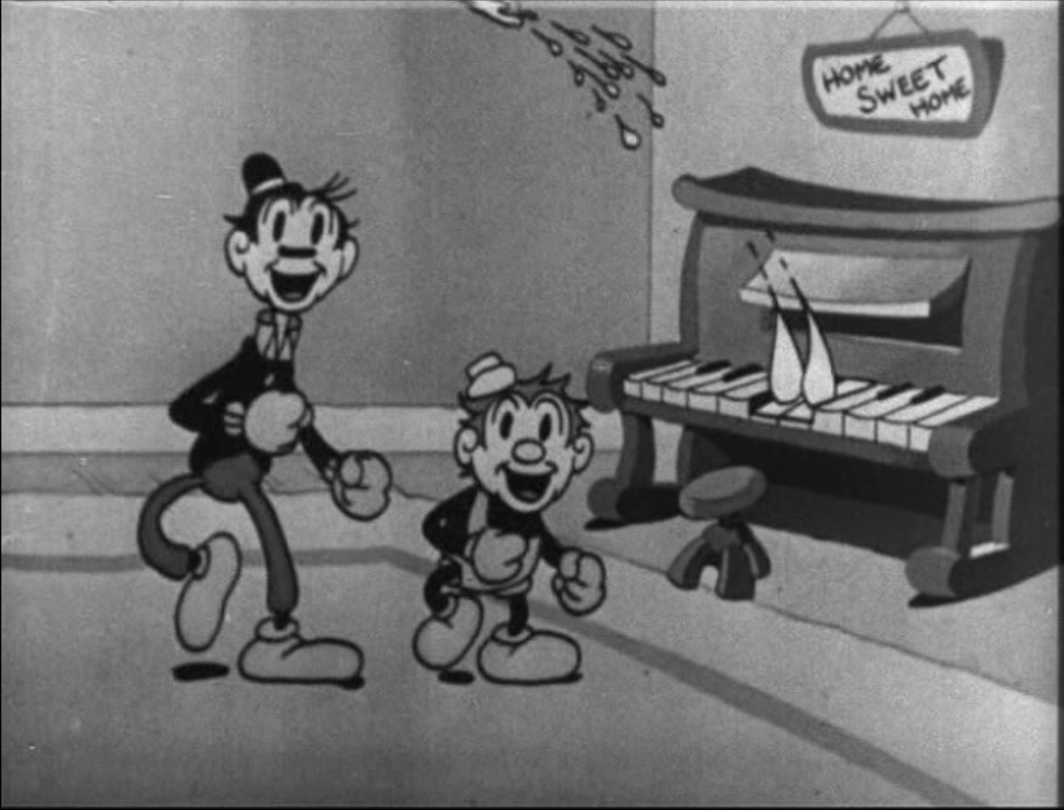 Still from ‘Joint Wipers’ featuring Tom & Jerry singing a song, while water drops play the piano
