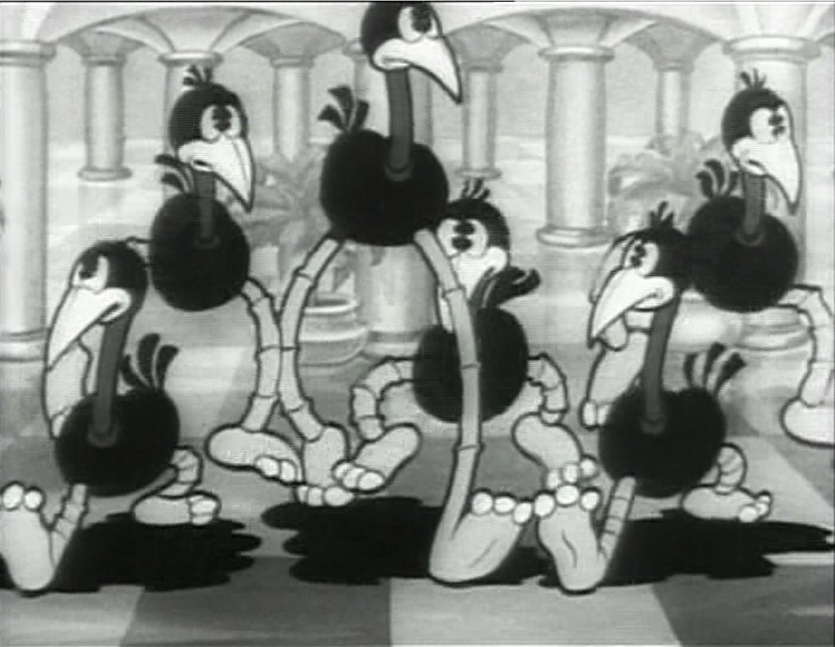 Still from ‘The Dancing Fool’ featuring birds in a complex dancing routine