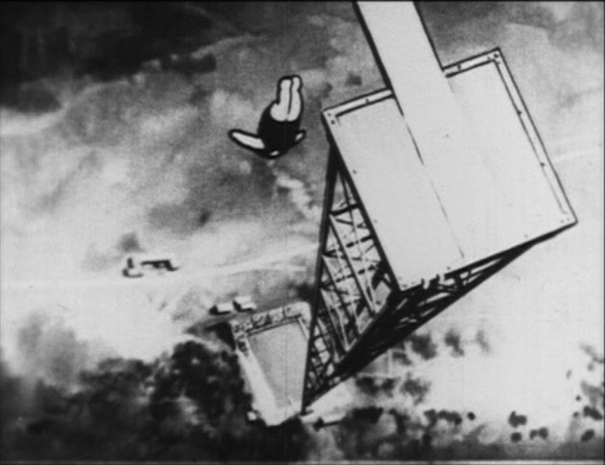 Still from ‘Sports Day at Animal Village’ featuring the polar bear diving from a ridiculously high platform