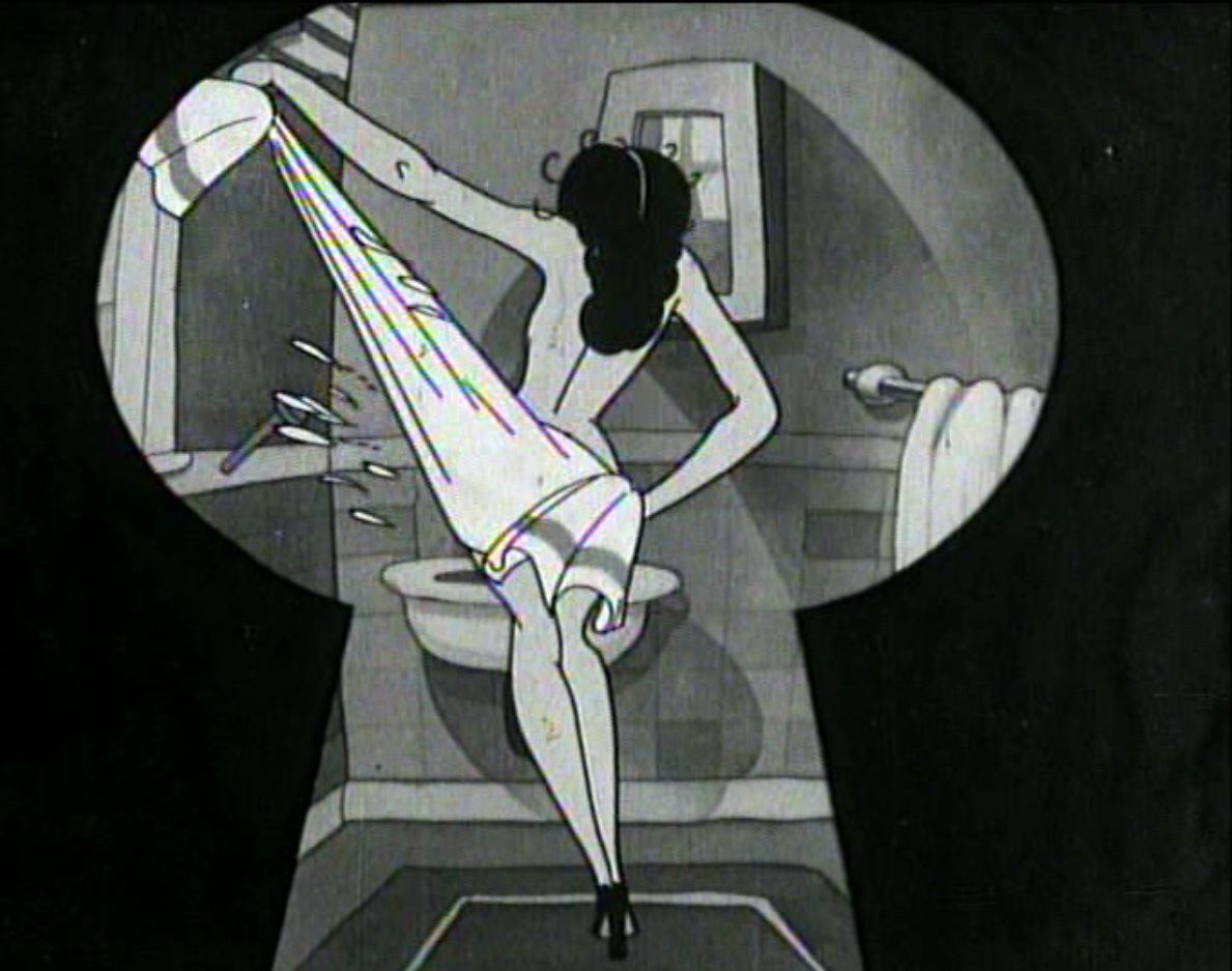 Still from Room Runners’ featuring a keyhole shot of a naked lady drying herself