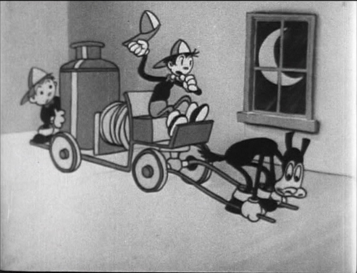 Still from ‘ook & Ladder Hokum’ featuring Van Beuren’s Tom & Jerry as fire fighters