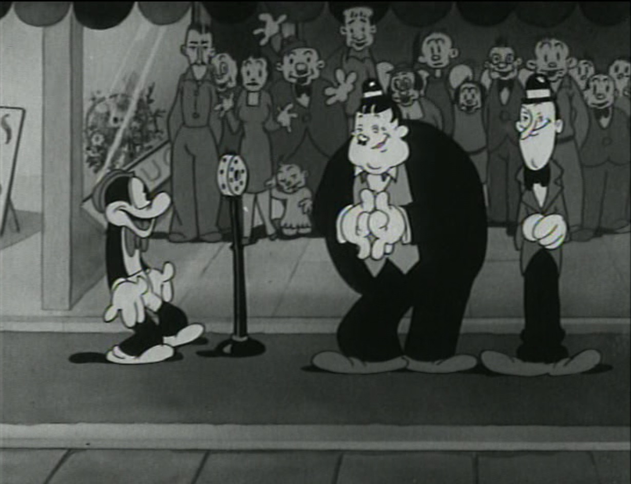 Still from ‘Soda Squirt’ featuring Laurel and Hardy visiting Flip the Frog’s soda joint
