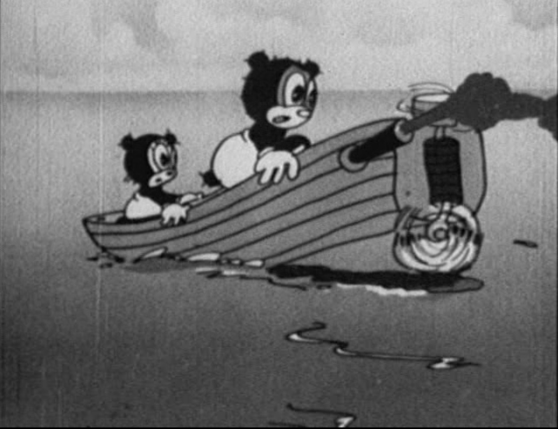 Still from ‘Cubby’s Picnic’ featuring Cubby the Bear and his girlfriend in a stubborn boat