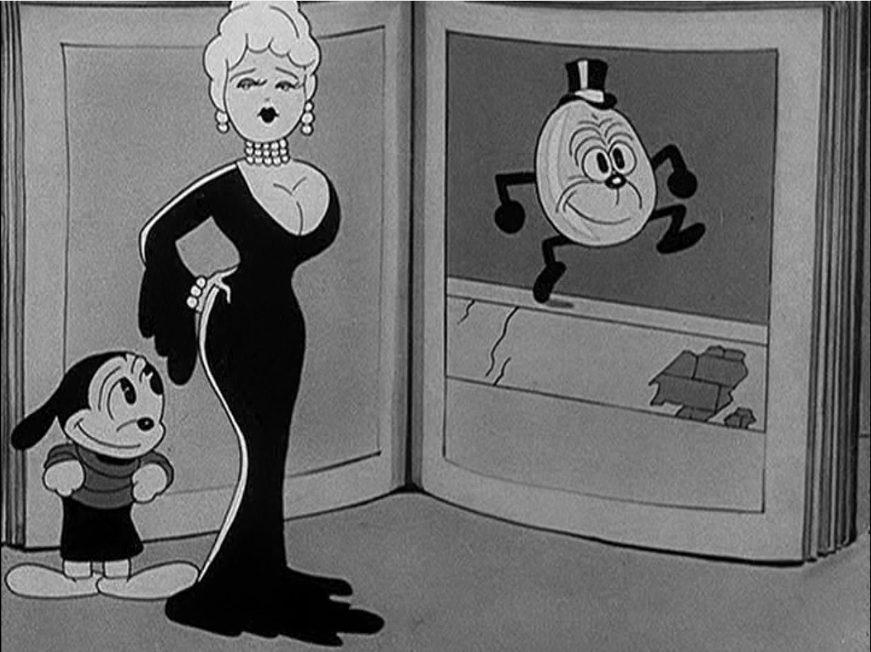 Still from ‘The Merry Old Soul’ featuring Oswald, Mae West and Humpty Dumpty