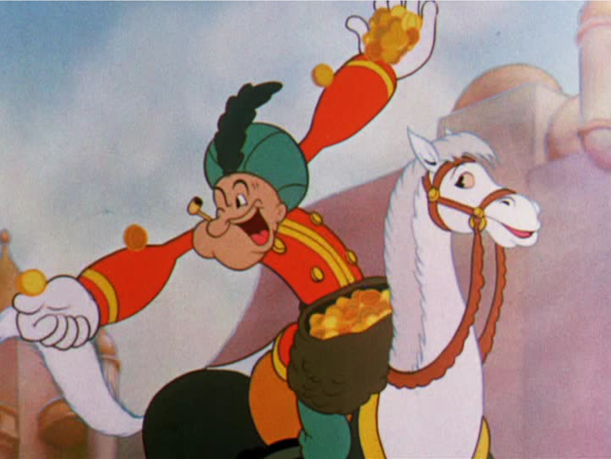Still from ‘Aladdin and his Wonderful Lamp’ featuring Popeye as Aladdin