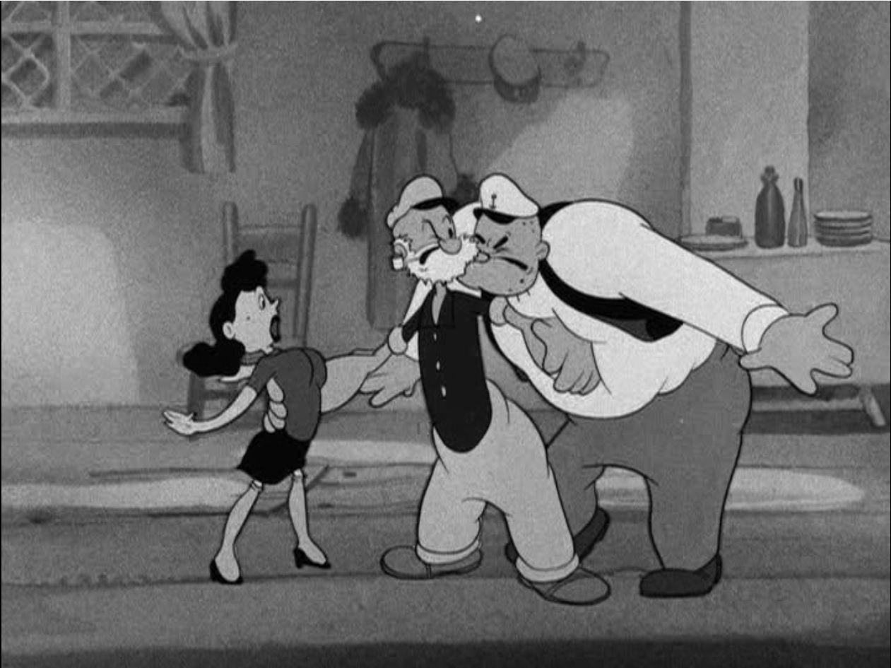 Still from ‘With Poopdeck Pappy’ featuring Poopdeck Pappy stealing a girl from a sailor on the dancefloor