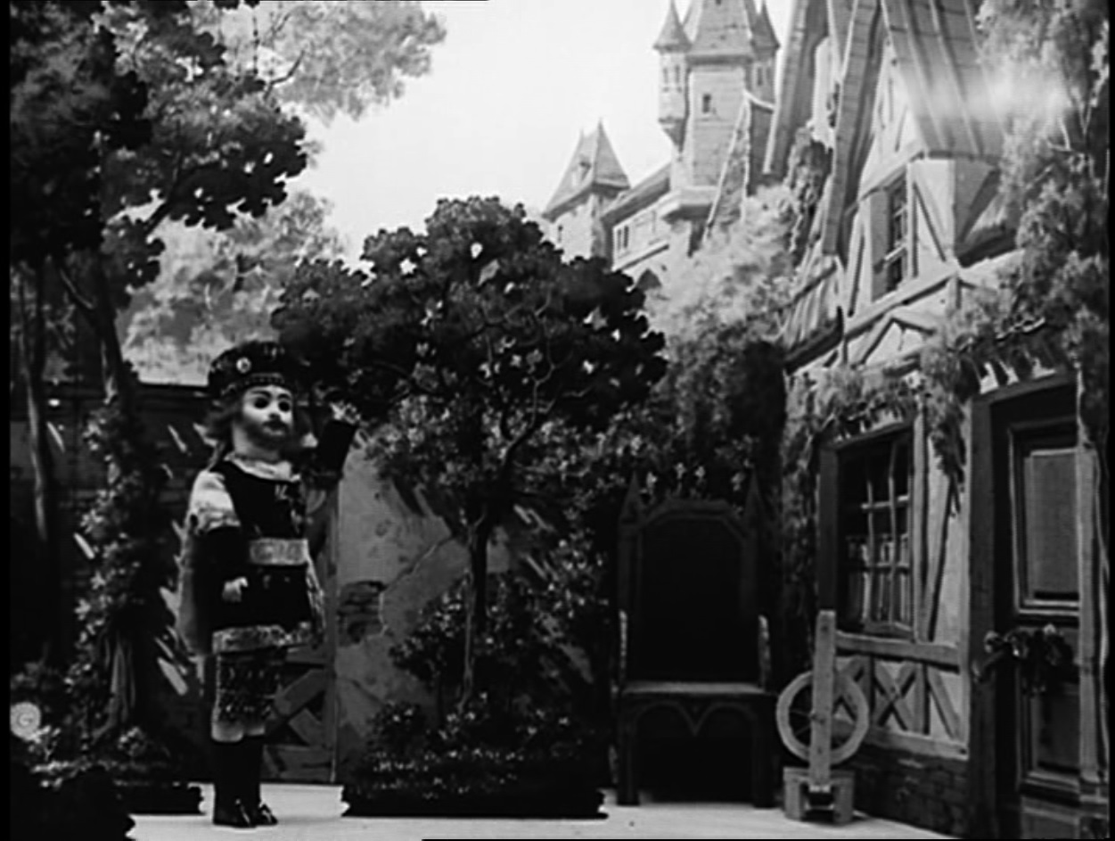 Still from ‘Le tout petit Faust’ featuring Faust in the garden of Margarete