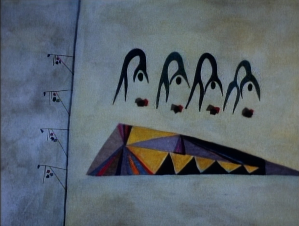 Still from ‘Tall Time Tales’ featuring semi-abstract images of people working