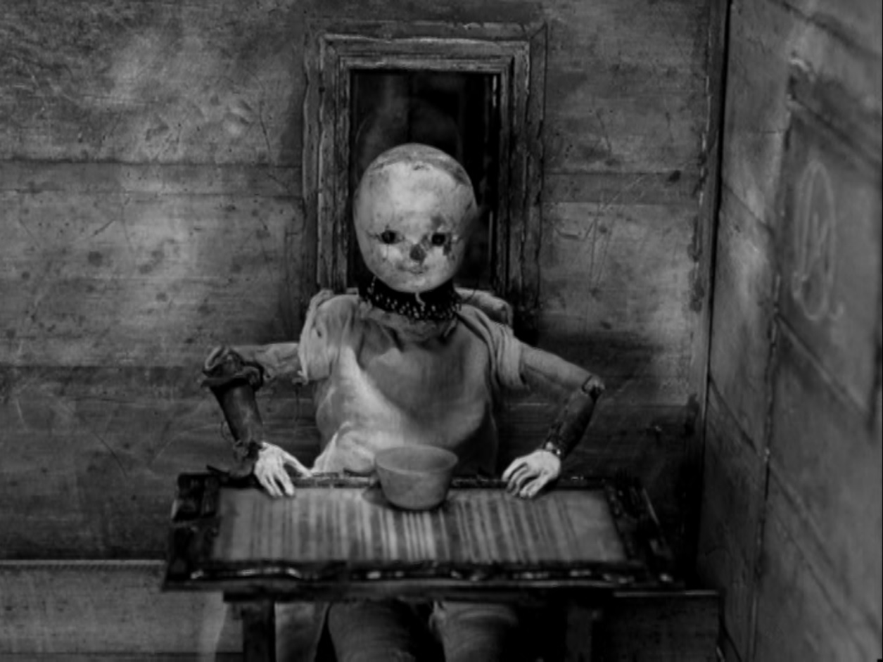 Still from ‘Stille Nacht I Dramolet’ featuring a doll sitting at a table