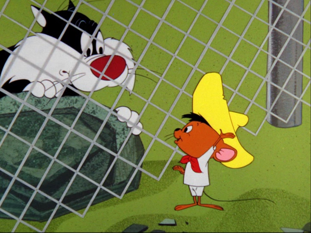 Still from ‘West of the Pesos’ featuring Speedy Gonzales addressing Sylvester