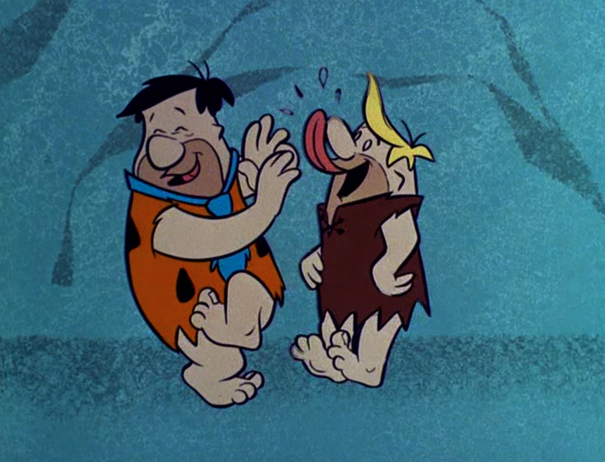 Still from ‘The Hypnotist’ featuring Barney, thinking he’s a dog, licking Fred