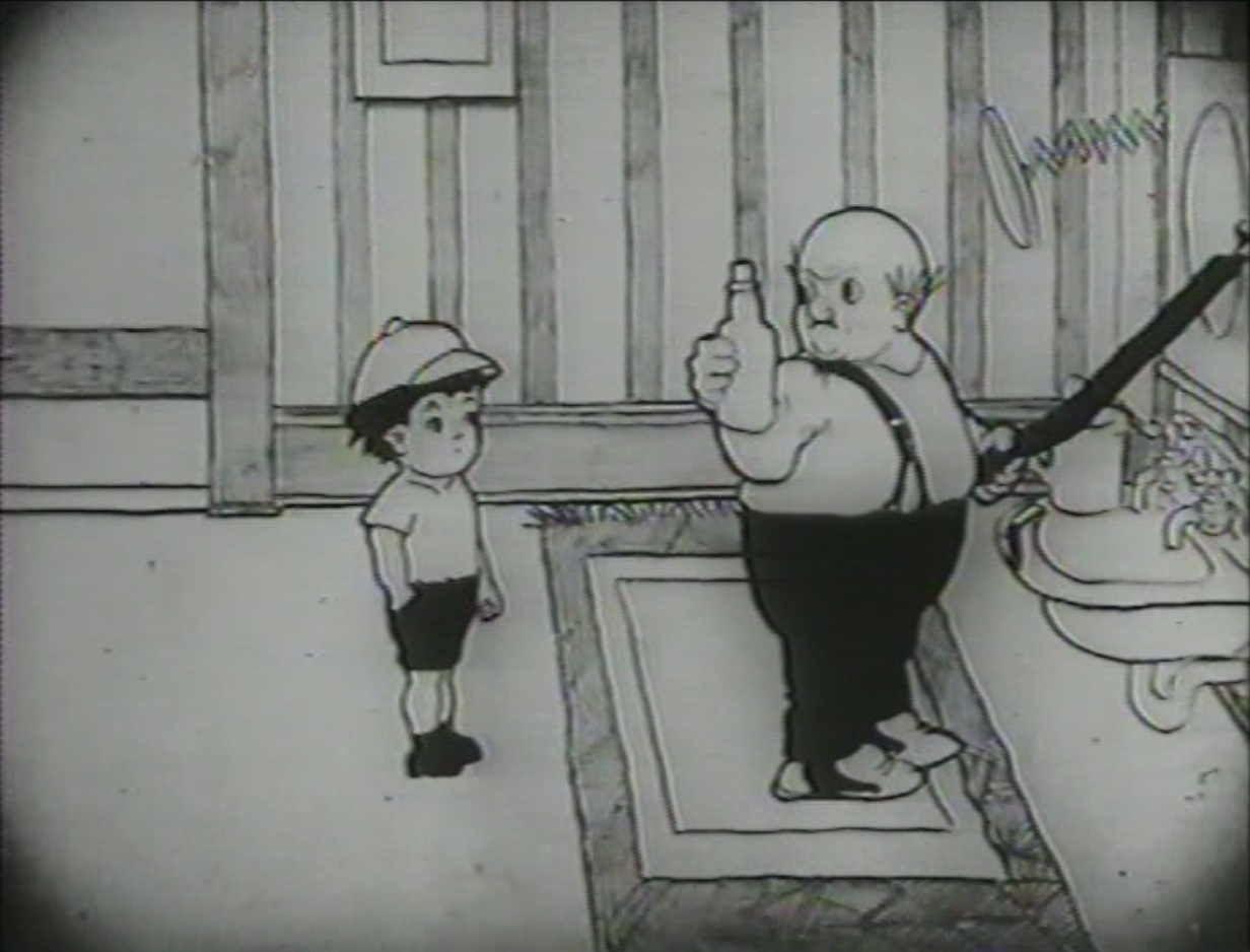 Still from ‘Before and After’ featuring Bobby Bumps trying to sell hair lotion to his father