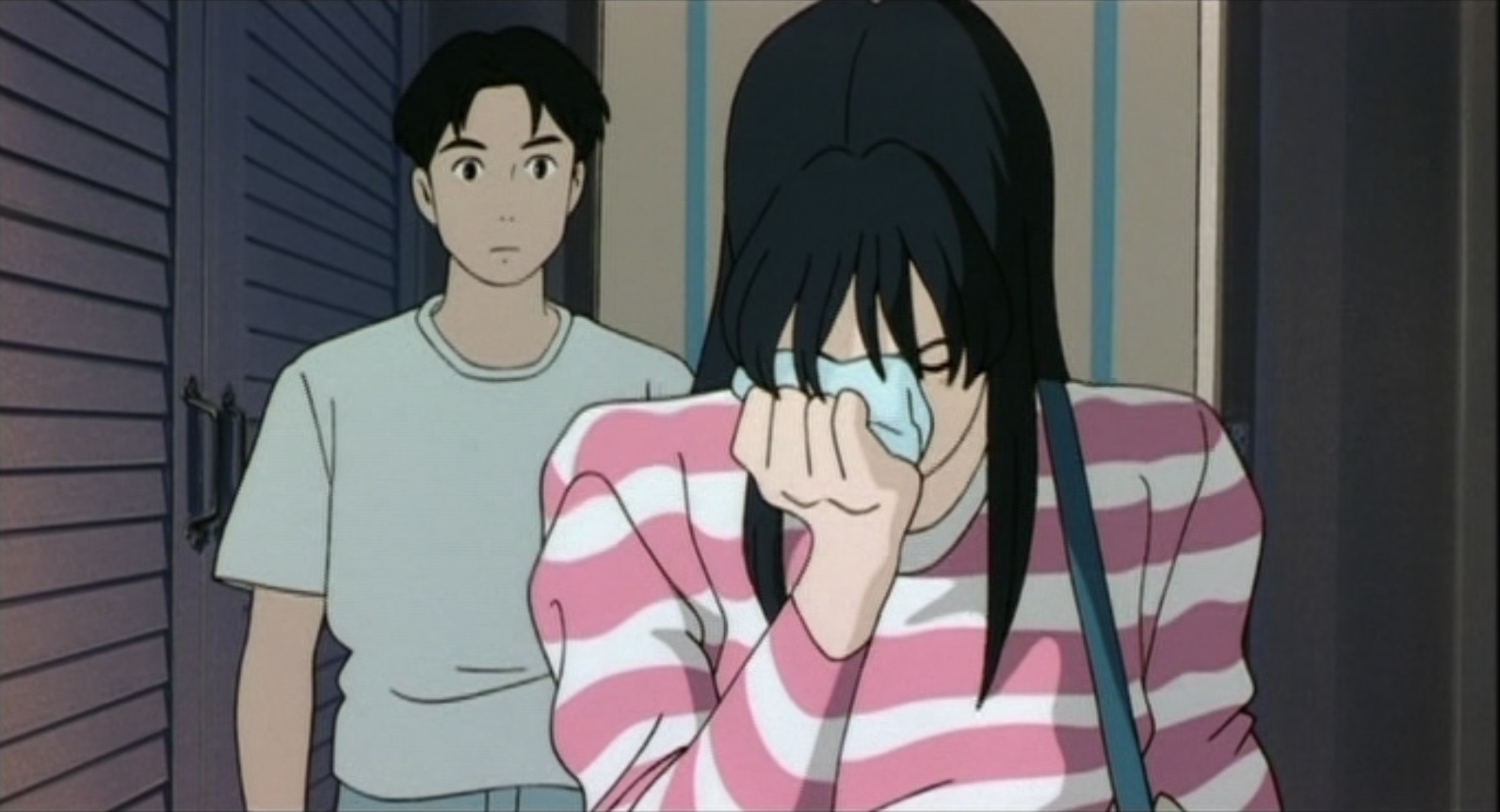 Still from ‘Ocean Waves’ featuring Taku staring at a crying Rikaku