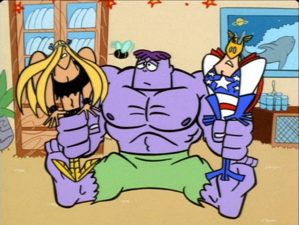In ‘The Amazing Colossal Duckman’ Duckman grows taller each time he has a temper…