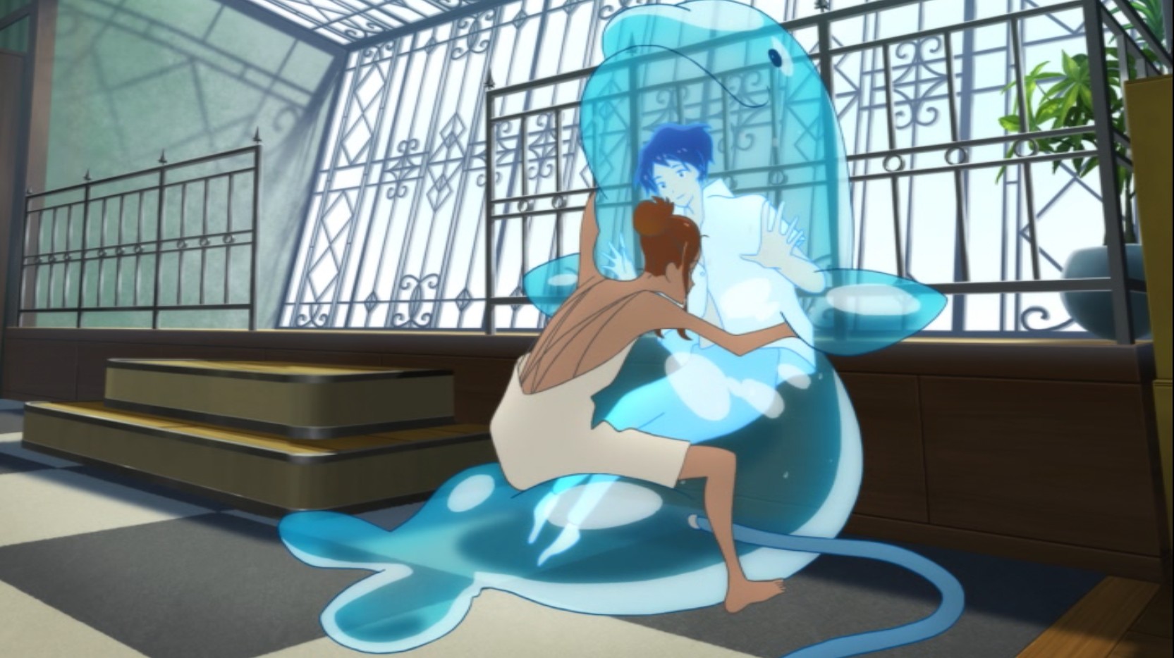 ‘Ride Your Wave’, Yuasa’s feature film from 2019, is remarkably normal compared to these earlier features. True, the human designs are strangely elongated, there are some distorted shots, and strange perspectives, and the color designs are brighter than usual in anime, but the background art is much more standard anime fare. The story, too, has nothing of the mind-blowing qualities of the earlier features. In fact, ‘Ride Your Wave’ is a disappointingly normal love story with a supernatural element, an almost obligate story ingredient in Japanese feature animation.
