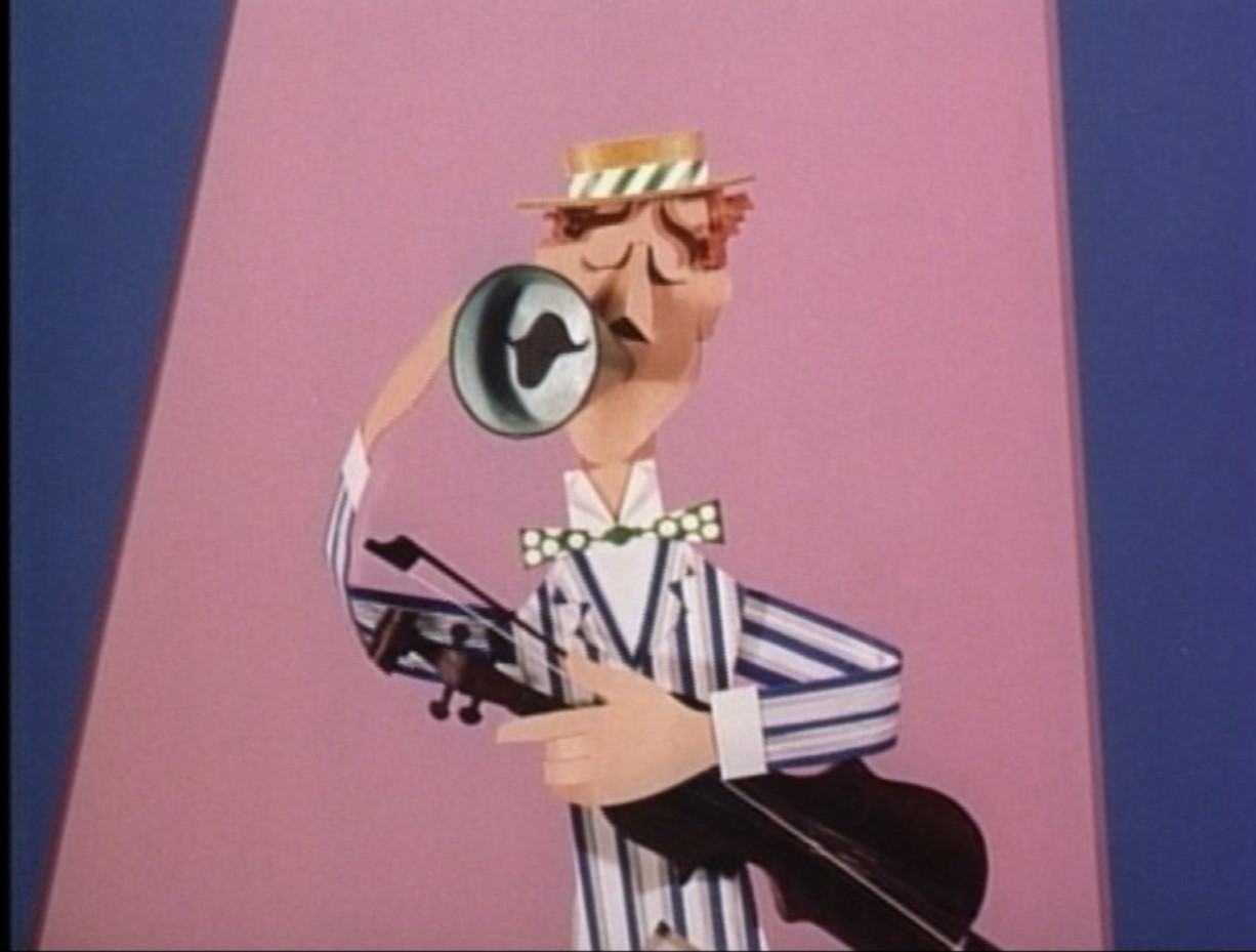 Von Drake himself is traditionally animated, but his songs are accompanied by delighftul stop-motion and cut-out animations, designed by Xavier Atencio and animated by Bill Justice. In the first song, ‘Rutabaga Rag’, the two indulge in traditional stop-motion of vegetables dancing to the music. But in the subsequent songs the two favor a more sophisticated blend of cut-out and stop-motion, both attractively designed and well-animated.