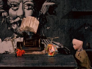 However, ‘The Cabinet of Jan Svankmajer’ is also interesting for animation buffs, even for the one who have seen all Jan Švankmajer’s films, for its original interludes, which are animated by the Quay brothers. These interludes have a truly Švankmajer-like atmosphere, highlighted by the reuse of music from Švankmajer’s films. They feature a Švankmajer-like teacher, made of household objects, and his apprentice, a doll, whose head is emptied in order to let him experience the world anew.