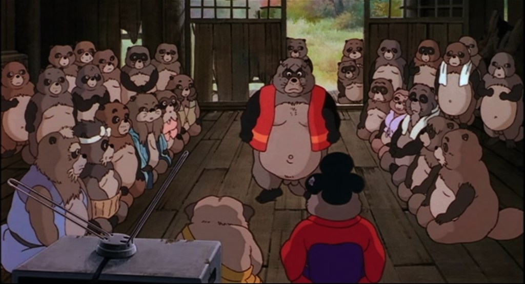 To start: this film is not about raccoons, but about raccoon dogs, which, despite their similarity, are only distantly related to raccoons, being more akin to foxes. The story tells about a population of raccoon dogs living on the Tama hills in Southwest Tokyo. The raccoon dogs see their own environment giving way rapidly to the ever growing metropolis, and decide to fight back in order to save their homes by reviving their old shape-shifting skills…