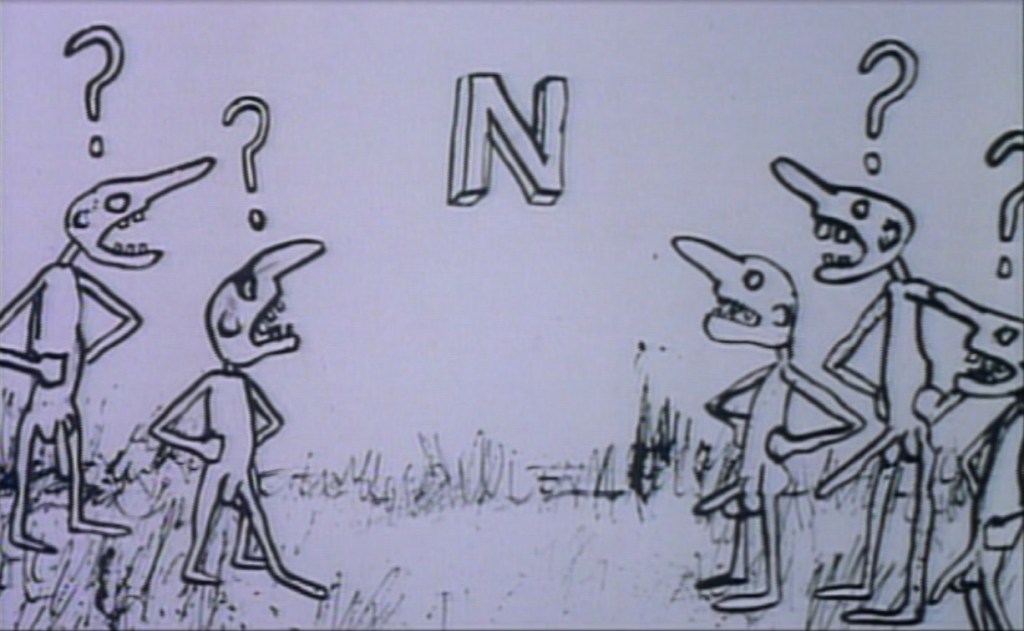 ‘The Discovery of Language’ is ‘episode 10’ of Phil Mulloy’s ‘The History of the World’, which in real life only consists of three films, of which this one is the first.