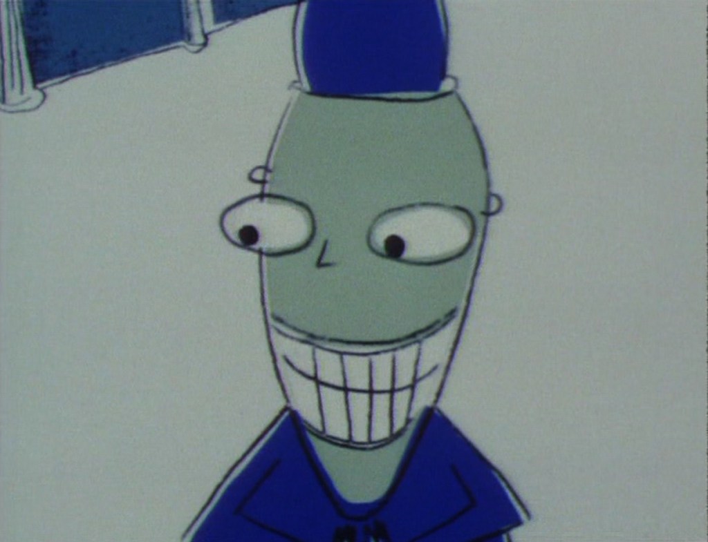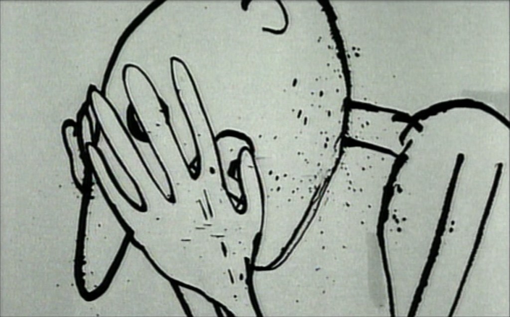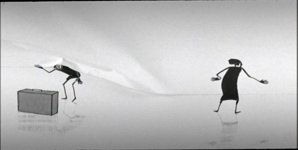 The film has a very nervous atmosphere, greatly helped by the soundtrack, and at points reaches an atmosphere of pure paranoia. The animation itself too is nervous, with expressionistic images, lots of deformations, tunnel-perspectives and animated backgrounds. Wood’s drawing style is crude and expressionistic, even if it retains a certain cartoony quality. And even though the ending feels like a punchline, it’s Wood’s unusual, frantic style that stays in your head after watching the short little film.