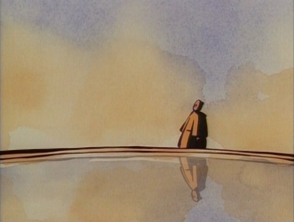 In this film Dudok de Wit already establishes his trademark command of light and shadow. The setting is a monastery bathing in Summer sunlight. In fact, all background artwork, done by Dudok de Wit himself, is gorgeous. The film has a very simple premise (a monk wants to catch a fish), uses no dialogue, and knows a simple character design and excellent comic timing. Yet, the film is not a gag film, but a rather poetic meditation on fanaticism.