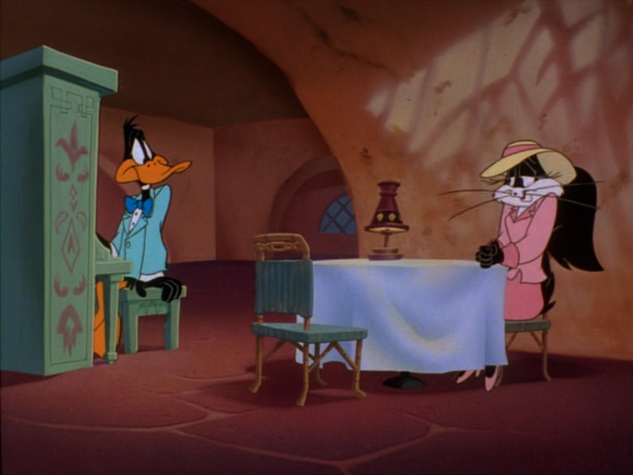 The short, however, originally was shown theatrically, accompanying the live action feature ‘The Amazing Panda Adventure’ in North America and the animated feature ‘The Pebble and the Penguin’ internationally. Thus, the film is a clear product of the cartoon renaissance, reviving many characters from the classic Looney Tunes and Merrie Melodies.