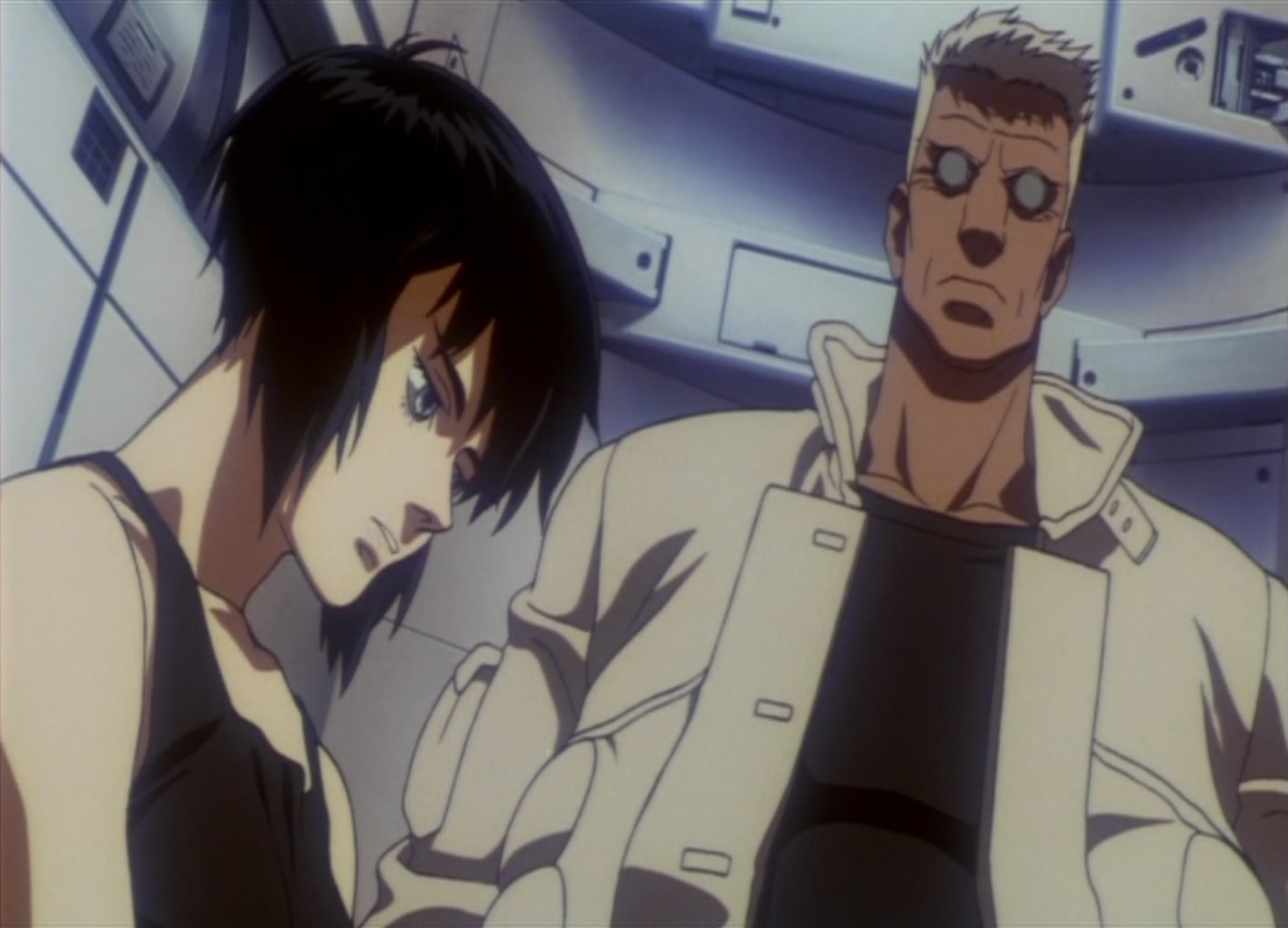 The character designs, too, also by Okiura, leave much to be desired. The characters are very generic, and rather angular, and lack the appeal of those in contemporary Ghibli or Otomo films. Kusanagi is hardly the sexy heroine she’s supposed to be, and often looks uncannily masculine. At least the Western characters are distinguishable from the Asian ones, a rather rare feat in anime.