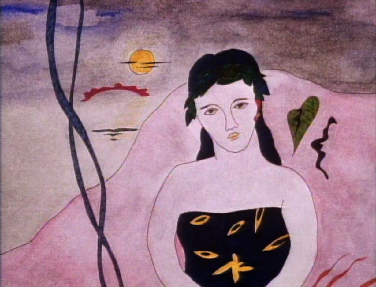 In ‘Rainbows of Hawai’i’ director Faith Hubley, ever thirsty for mythology, turns her attention to the isles of Hawaii. She retells four Hawaiian stories, in her own idiosyncratic way, using a lot of repetitive animation cycles, dancing figures, and semi-abstract, yet vibrant images.