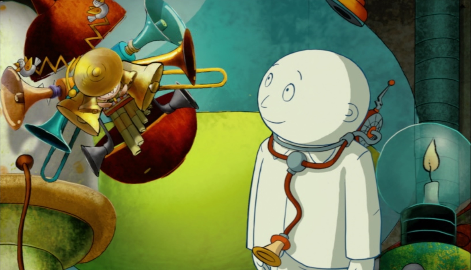 It must be said that ‘The Life of Budori Gusuko’ can boast some lush and outlandish background art, qualitative if unremarkable animation, adequate effect animation, and a modest dose of apt computer animation when depicting moving doors, lamps, factory parts, flying machines and of Gusuko ascending the stairs. There’s even some puppet animation during the second dream scene. Moreover, the sparse chamber music score is pleasant and effective. Composer Ryōta Komatsu makes clever use of strings, harpsichord, accordion, and percussion. But all these positive aspects cannot rescue a film whose central story is a bad choice to start with.