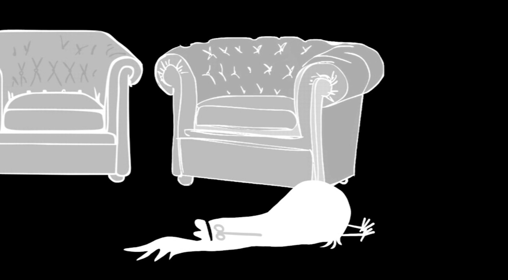 The film is is black and white itself and tries to play with the idea that the white chicken is invisible in light and the black chicken invisible in the dark. Thus the film features a lot of on and off switching of lights.