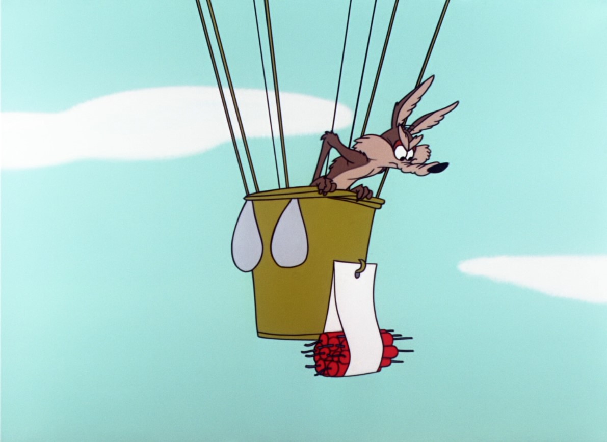 The short is noteworthy for a string of gags that all use a large catapult, which of course, fails the coyote repeatedly. Apart from the catapult gags, the giant spring gag is a nice one. Note the extreme deformation of the coyote’s body when it gets caught in a telephone wire: the coyote’s eyes and feet stretch for several meters at that point.