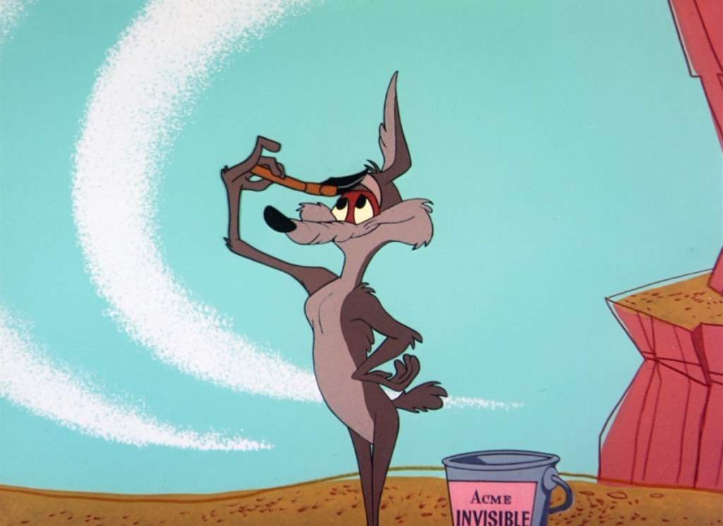 ‘Hare-breadth Hurry’ is the last of five cartoons in which Chuck Jones combined the Coyote with Bugs Bunny. This is a particularly weird one, as Bugs Bunny replaces the Road Runner, as he explains at the beginning of the short.
