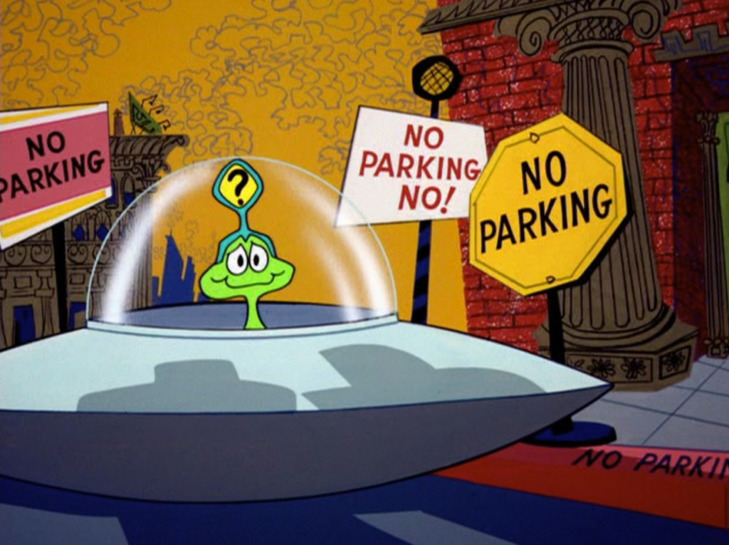 ‘Martian Through Georgia’ knows a very lame and disappointing ending and is far from funny, but the film’s character designs and animation are of a high quality. Yet, the film’s main attraction are its avant-garde layouts by Maurice Noble and background art by Philip DeGuard. Noble goes completely wild, so the artwork becomes a marvel from start to end. So even if the story fails to inspire, the film’s looks remain entertaining throughout.