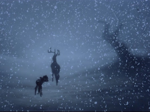 3) The meadow: where both danger and other deer are introduced, including Bambi’s father and his later love interest, Feline;