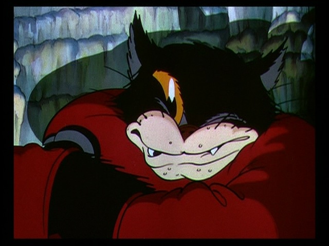 Enter a nightmarish sequence, in which the cat imagines his lives are fleeing him, and that he’s being attacked by giant birds, hooting owls, bats, giant spiders and hollow trees. Luckily, in the morning it all appears to have been a dream.