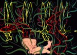 Winsor McCay’s second cartoon is about a giant mosquito who sucks a sleeping man until his body is a giant bulb. Then, suddenly aware of the audience, he performs some tricks on the man’s nose, sucks some more and explodes.