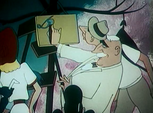 ‘Mr Wolf’ is based on a comedy by Evgeny Petrov. Although drowned in caricature, this blatant propaganda film is hardly funny: its animation is elaborate, but painstakingly slow, and too excessive. Moreover, it is not too clear what the message is. Are all Westerners blinded by greed? Is pacifism senseless in a world of war? Are oil and peace at odds with eachother? I’ve no idea.