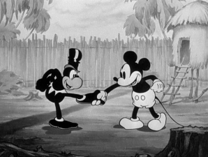 Even when compared to Disney’s two other embarrassing cartoons about cannibals (the Silly Symphony ‘Cannibal Capers‘ (1930) and ‘Trader Mickey‘ (1932, curiously also directed by David Hand), the depiction of natives in ‘Mickey’s Man Friday’ is backward and humiliating. Mickey’s man Friday uses his feet more than his hands and appears to be more closely related to apes than to man. This is so sickening to watch that this is one of the very rare cartoons of which I feel that they could have remained under the rug, despite the fast and clever ‘invention gags’ featured in this cartoon, which foreshadow comparable gags in ‘The Flintstones’.