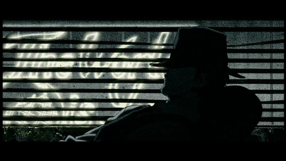‘A Detective Story’ is the fourth and last episode about people who discover the matrix. This episode is about a private detective and it uses all film noir cliches, including a very trite voice over. The nice black and white backgrounds evoke a forties atmosphere, even though the story is about hackers and chat rooms. But they cannot hide Studio 4°C’s very limited animation or the corny story, making ‘A Detective Story’ one of the weakest episodes of this package film.