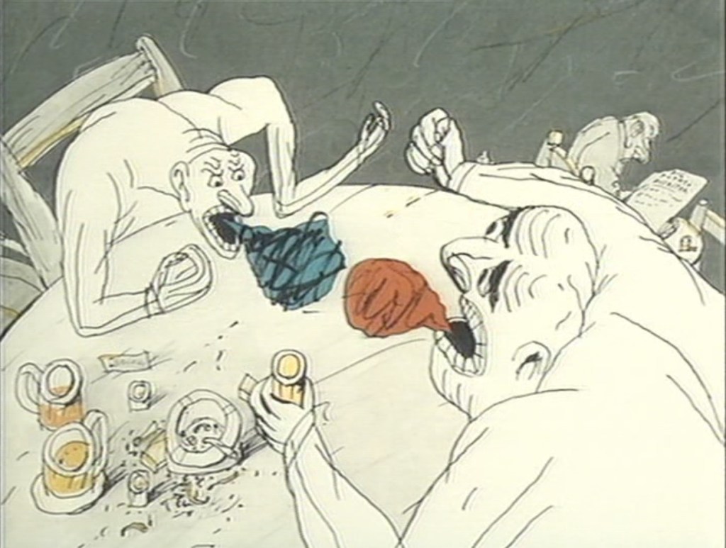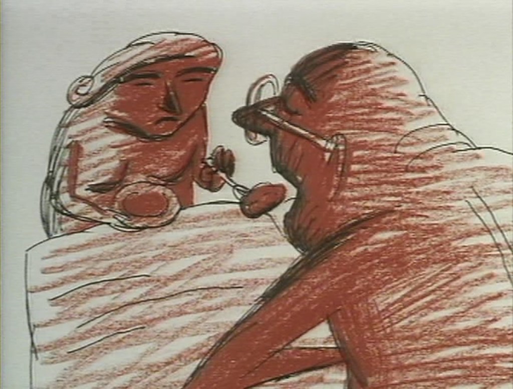 Like ‘Words Words Words’ Repete is a great work of animated surrealism, making full use of the medium. Pavlátová uses a very crude and scribbly pastel technique, shifting perspectives and no dialogue. Her style is completely her own, and very engaging. No wonder Repete, too, swept many awards.