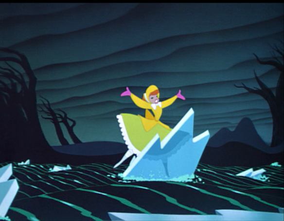 This sweet story is particularly interesting for its highly stylized backgrounds based on designs by Mary Blair and featuring unnatural colors, like a yellow sky. The story looks back to ‘On Ice‘ (1935) and even ‘The Ugly Duckling‘ (1931), which both feature a rescue from a waterfall, too.